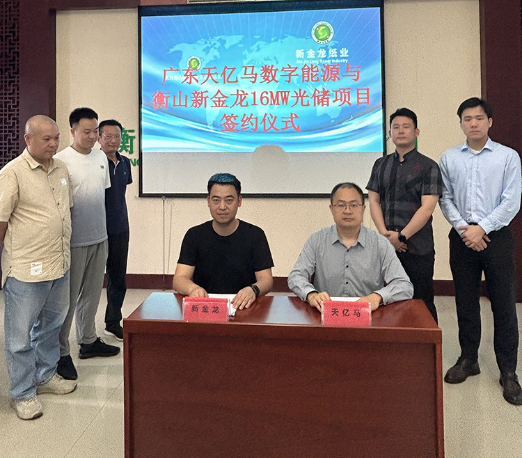 衡山新金龙纸业有限公司是一家集制浆、造纸、热电、环保于一体的现代化企业,主要采用废纸为原料,生产各类包装用纸,属废纸资源再生利用、循环经济型企业,是湖南省重点工业企业,湖南省包装纸生产龙头企业。本次天亿马数字能源与新金龙纸业合作的16MW规模光储项目预计总投资规模5800万元,建成后年节约标准煤可达5200吨,年减排二氧化硫可达100吨,年减排二氧化碳可达12400吨,将有效提高能源综合利用效率、减少碳排放,具有良好的环保效益、社会效益和经济效益。